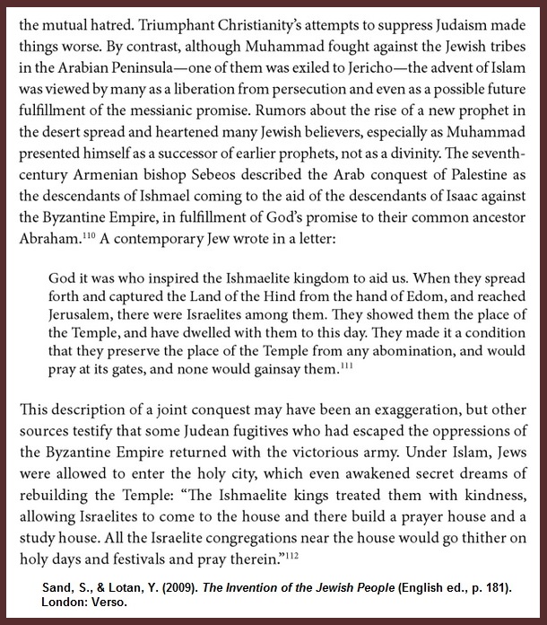Israelites under the colonial domination of the Byzantines in Palestine, were among the nations liberated by the 7th century Muslims.